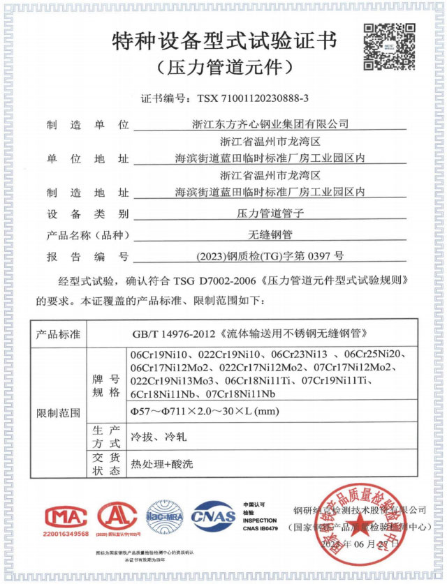 浙江東方齊心以不銹鋼系列產品為主導,品種有不銹鋼管、奧氏體不銹鋼管、高溫合金鋼管、雙相不銹鋼管、鎳基合金管、冷凝器用管、U形管、核電管、不銹鋼管件、法蘭、閥門等。規格有6-2020x0.8-60mm,Ф16-25長度可達33m。公司擁有精密制造鋼管的各類機械設備25臺(套),其中各類冷軋管機15臺, 冷拔機10臺,天然氣熱處理爐2套。